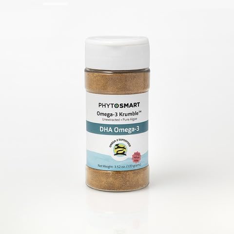 Omega-3 Krumble DHA for Pets, in 100 Gram Shaker Top Jar. Pure Un-extracted Marine Micro-Algae Provides Pets Complete Whole Food derived Essential Fatty Acids for Total Body Support.