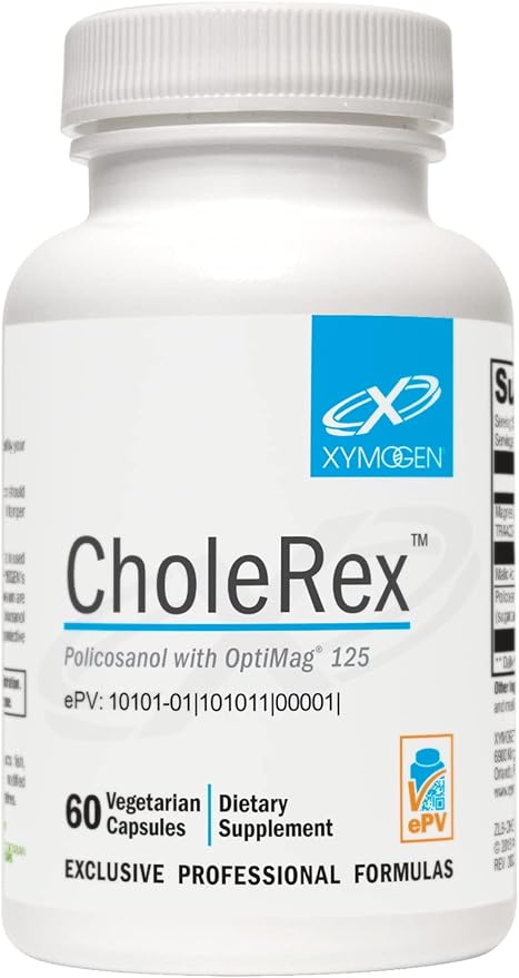 XYMOGEN CholeRex - Policosanol 10mg to Help Maintain Normal Blood Lipid Levels, Promote Healthy Blood Flow + Vessel Integrity - Enhanced with 2 Bioavailable Magnesium Chelates (60 Capsules)