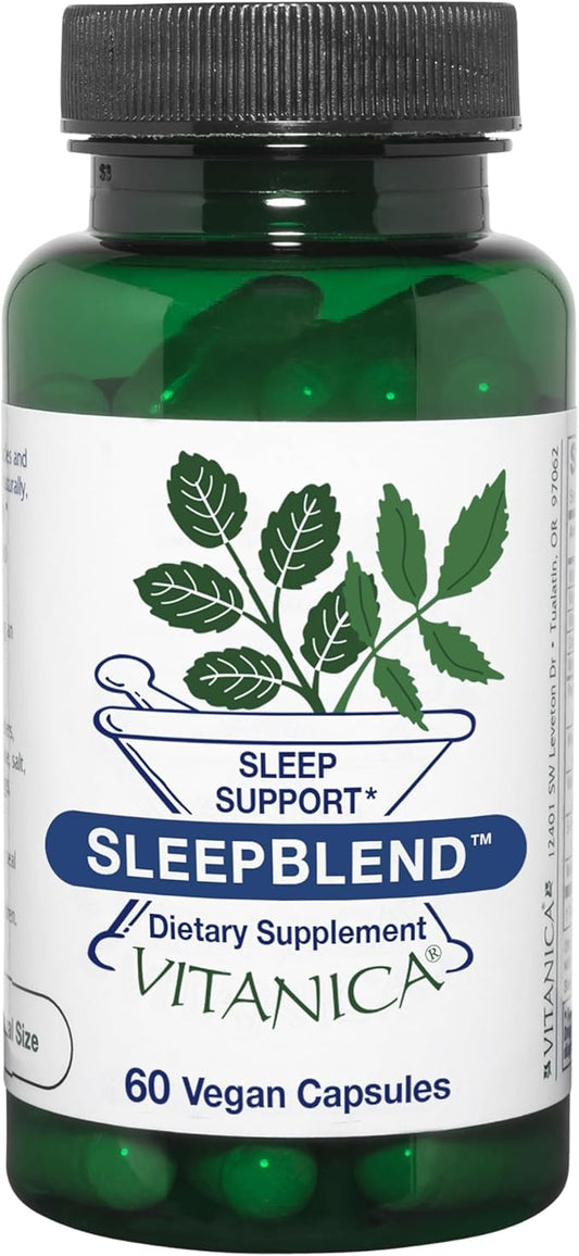 Vitanica Sleepblend, Non Habit Forming Sleep Support Supplement, with Melatonin, Valerian Root, Passionflower and Hops, Vegan, 60 Capsules