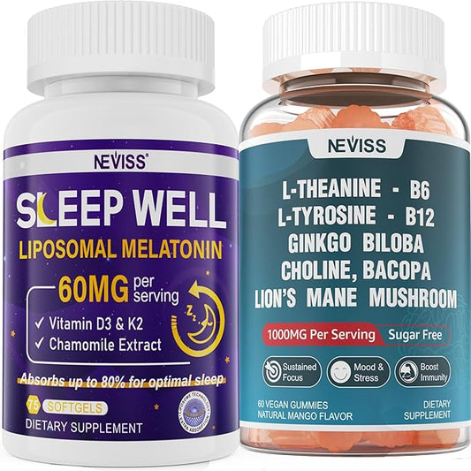 NEVISS L-Tyrosine Gummies & Melatonin 60mg for Adults Bundle
