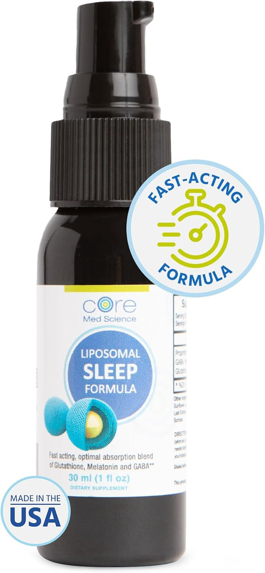 Liposomal Oral Sleep Spray Formula by Core Med Science, 1 Fl Oz - Melatonin Spray for Sleep & Relaxation - Glutathione, Melatonin, & GABA Sleep Aid Spray for Adults - Supports Restful & Quality Sleep