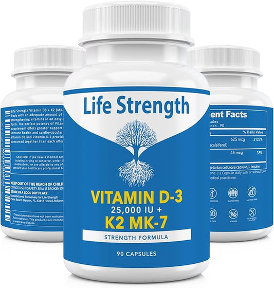 Vitamin K2 (MK7) + D3 25,000IU Supplement - Extra Strength, Non GMO, Easy to Swallow, No Fillers - Supports Immune & Bone Health