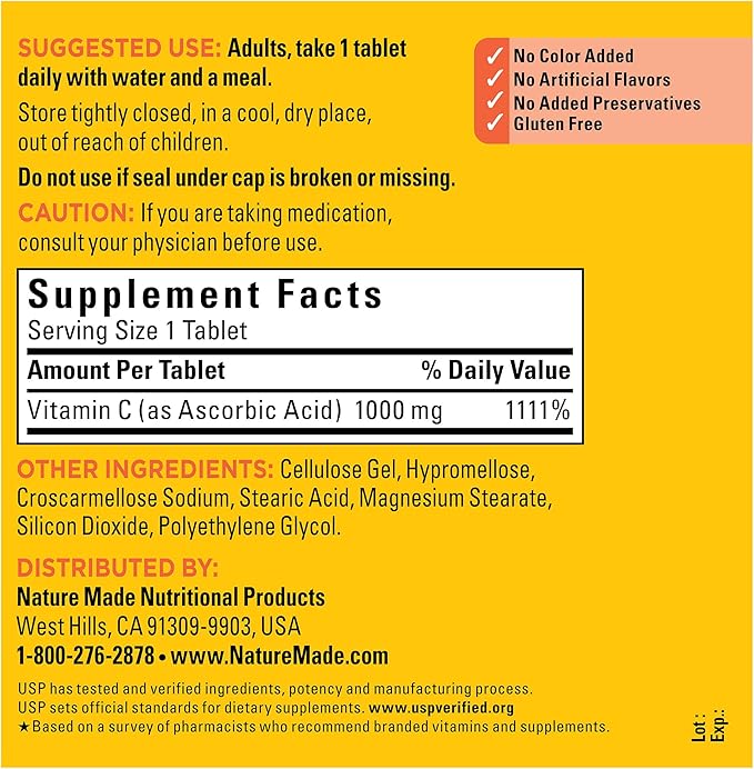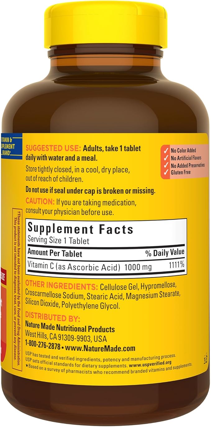 - These Nature Made Vitamin C 1000mg tablets are Vitamin C supplements that help support immune health and provide antioxidant support