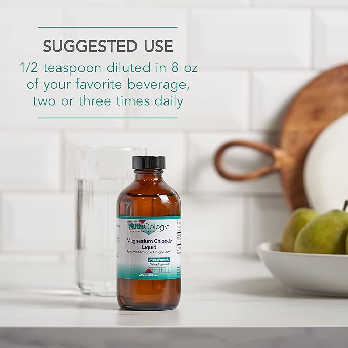 Nutricology Magnesium Chloride Liquid - Bone Support, Potassium Sorbate, Electrolytes, Joint Support, Pure, Well-Absorbed, 66.5mg Supplement - 8 Fl Oz