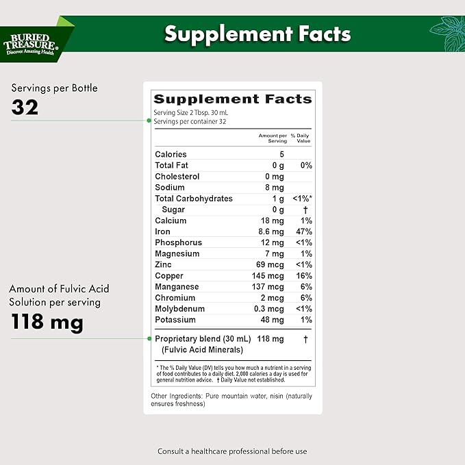 - Trace Minerals: Buried Treasure Fulvic Minerals Pure delivers over 70 trace minerals from humic shale. Mineral blend nutrients for daily use