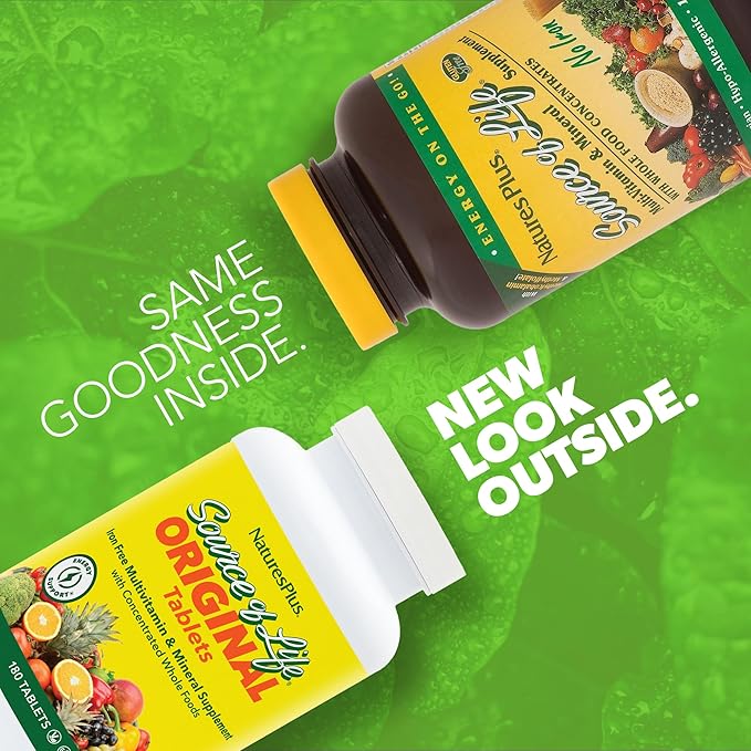 NaturesPlus Source of Life No Iron - 180 Tablets - Multi-Vitamin & Mineral Supplement - Supports Natural Energy & Overall Well-Being - Gluten Free, Vegetarian - 60 Servings
