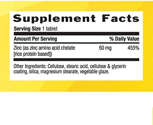- POWERFUL IMMUNE SUPPORT & OPTIMAL ABSORPTION: Chelated Zinc 50 mg Tablets provide robust immune health benefits by enhancing cellular activity, while ensuring optimal absorption and bioavailability, making it an effective choice for maintaining adequate zinc levels and overall wellness.
