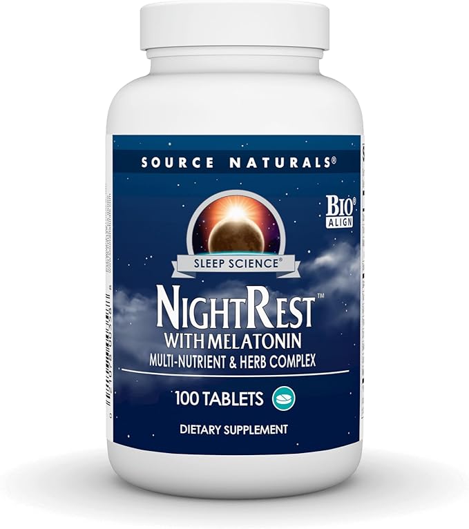 Source Naturals Sleep Science NightRest with Melatonin - BioAligned MultiNutrient & Herb Complex, for Rest & Relaxation Support* - 100 Tablets