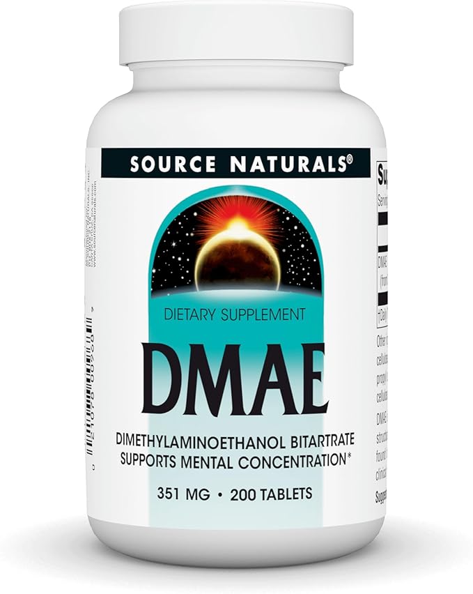 Source Naturals DMAE, Dimethylaminoethanol Bitartrate - Supports Mental Concentration - 200 Tablets