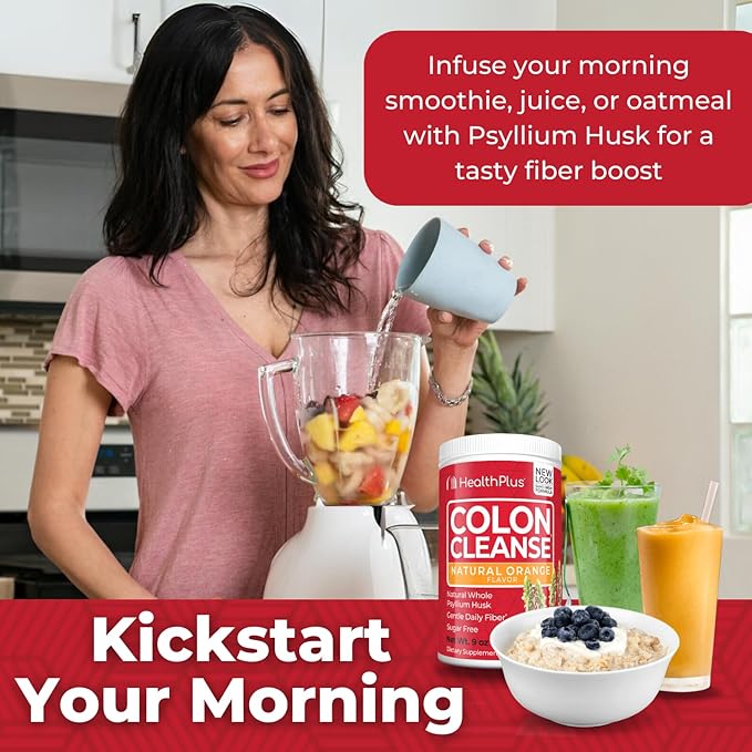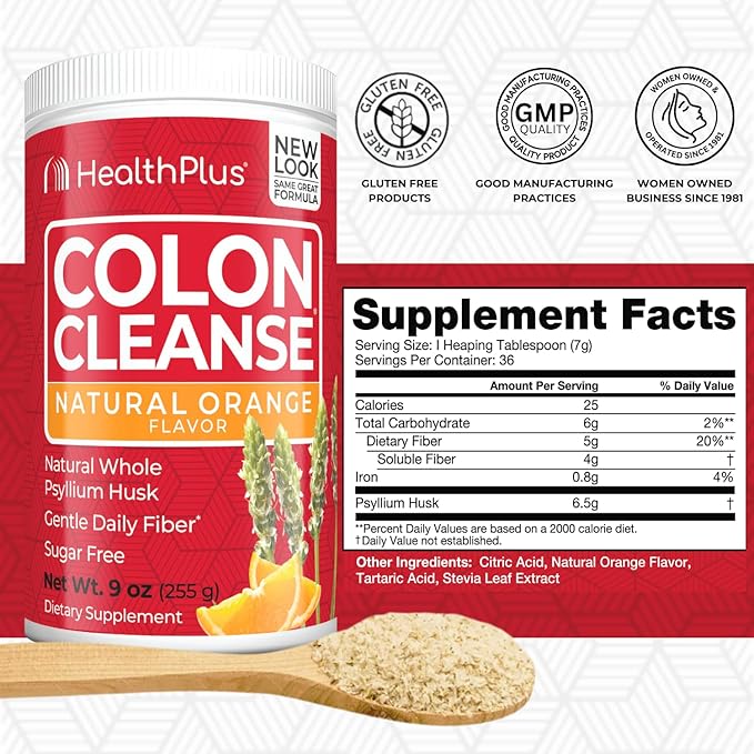 Health Plus Colon Cleanse Digestive Support | No Artificial Flavors | Daily Fiber for Toxin Elimination To Reduce Bloating | Psyllium Husk | Orange Flavor | 9 Ounces, 36 Servings