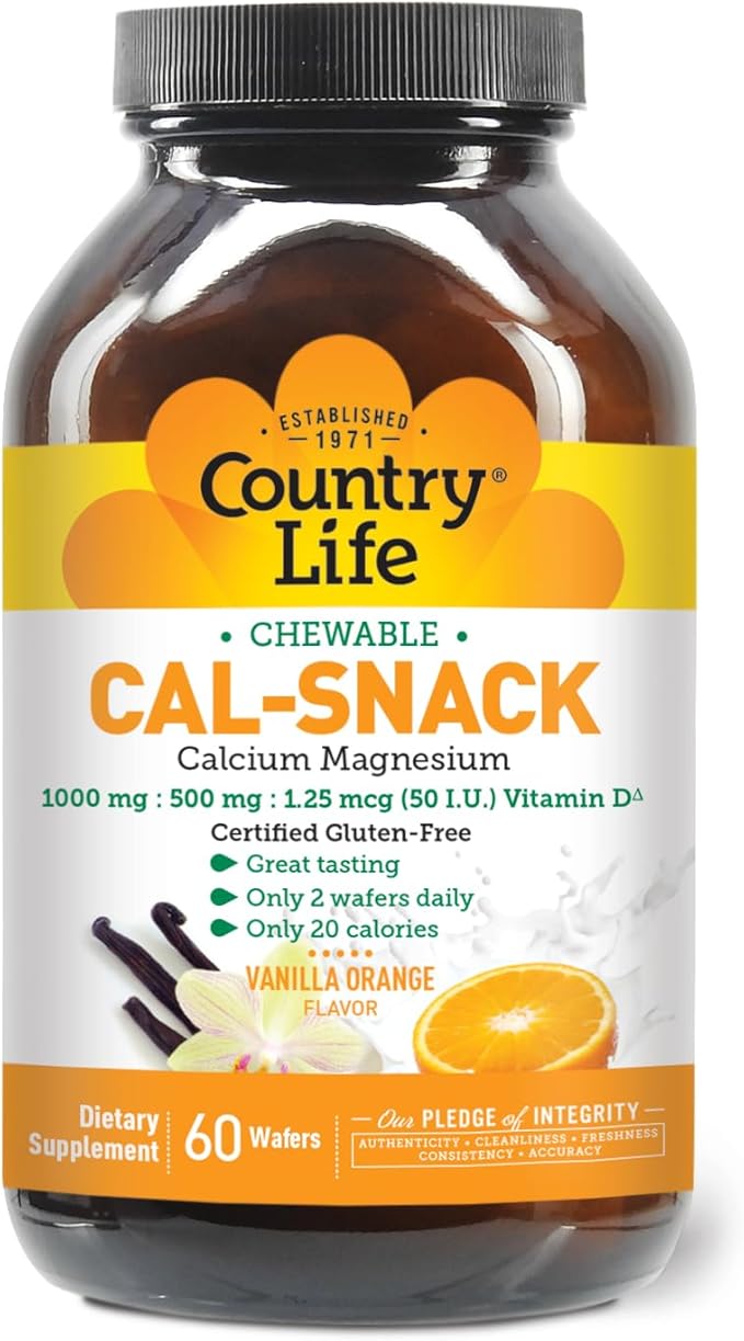 - Special Ingredients : Country Life Cal-Snack, Chewable Calcium, Magnesium with Vitamin D, 1000mg/500mg/50 IU, Dairy-Free, Vanilla Orange Flavor, 60 Wafers, Certified Gluten Free, Certified Vegan Country Life Cal-Snack, Chewable Calcium, Magnesium with Vitamin D, 1000mg/500mg/50 IU, Dairy-Free, Vanilla Orange Flavor, 60 Wafers, Certified Gluten Free, Certified V… See more