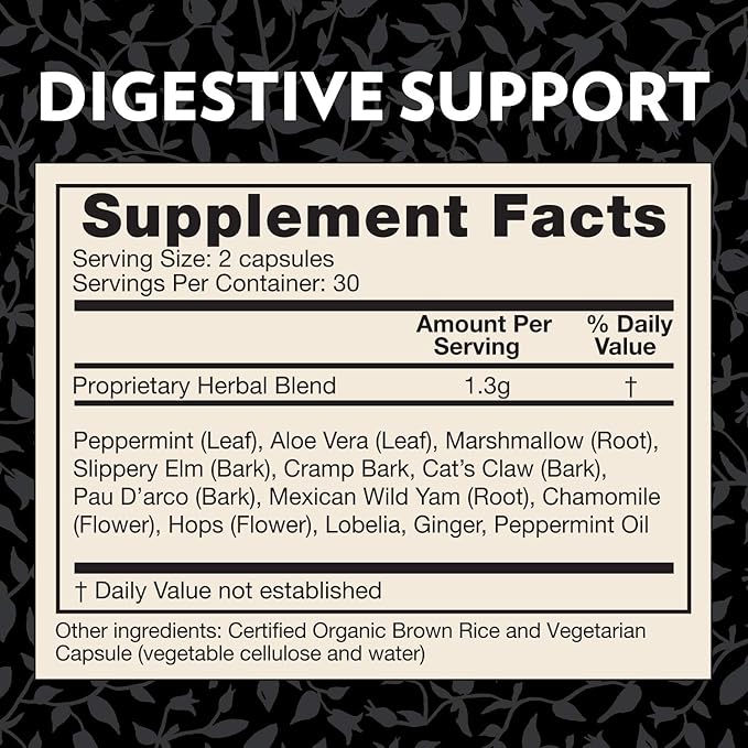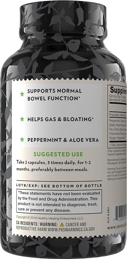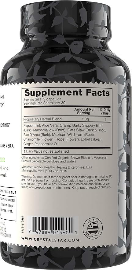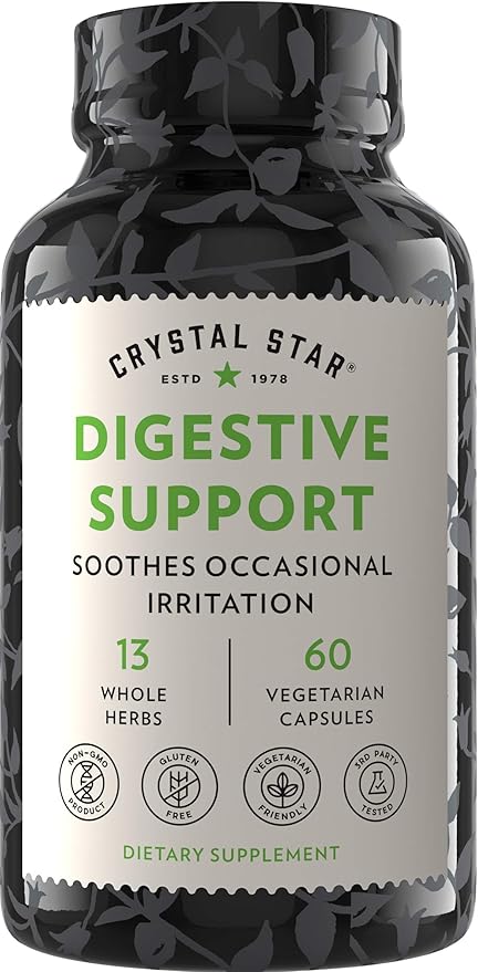 Crystal Star Digestive Support Supplement (60 Capsules) - Herbal Gut Health Supplement That Helps with Occasional Gas & Bloating - Peppermint, Aloe Vera, Slippery Elm & Ginger – Non-GMO