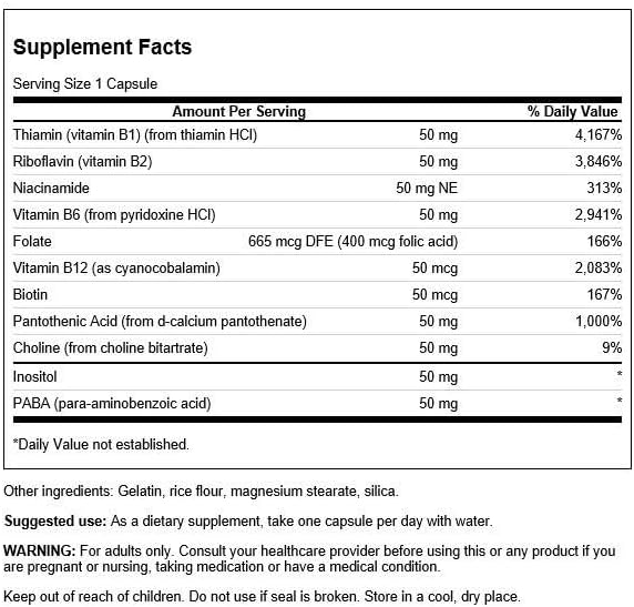 - Primary Supplement Type : Swanson B-50 Complex - Vitamin Supplement Promoting Energy & Metabolism Support - May Support Heart Health, Memory & Mood Support - (100 Capsules) Swanson B-50 Complex - Vitamin Supplement Promoting Energy & Metabolism Support - May Support Heart Health, Memory & Mood Support… See more