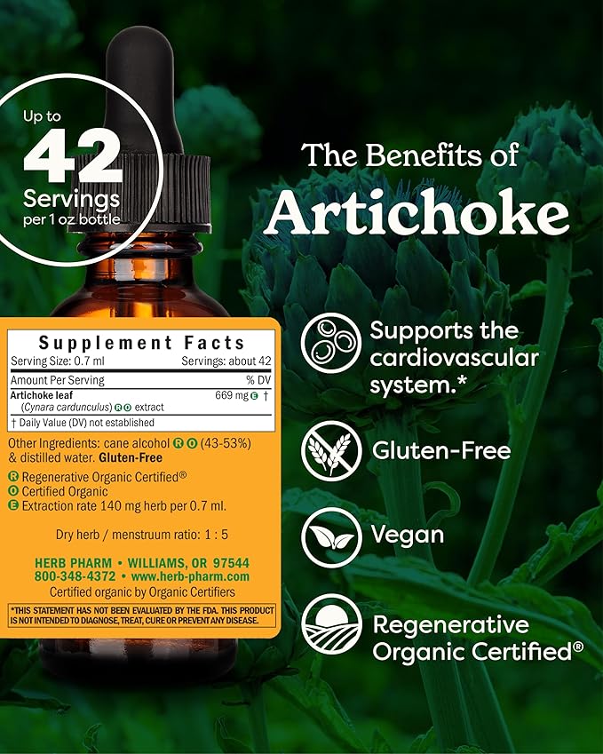 Herb Pharm Certified Organic Artichoke Liquid Extract for Cardiovascular and Circulatory Support - 1 Ounce