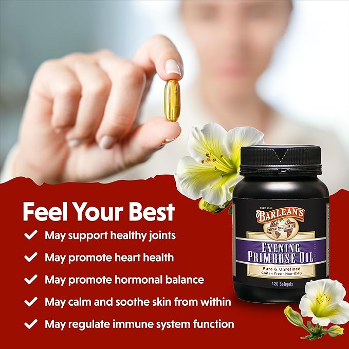 Barlean's Evening Primrose Oil Capsules, GLA Supplement for Men and Women, Healthy Skin, Immune Support and Bone Strength 1300mg Softgels, 120 Count