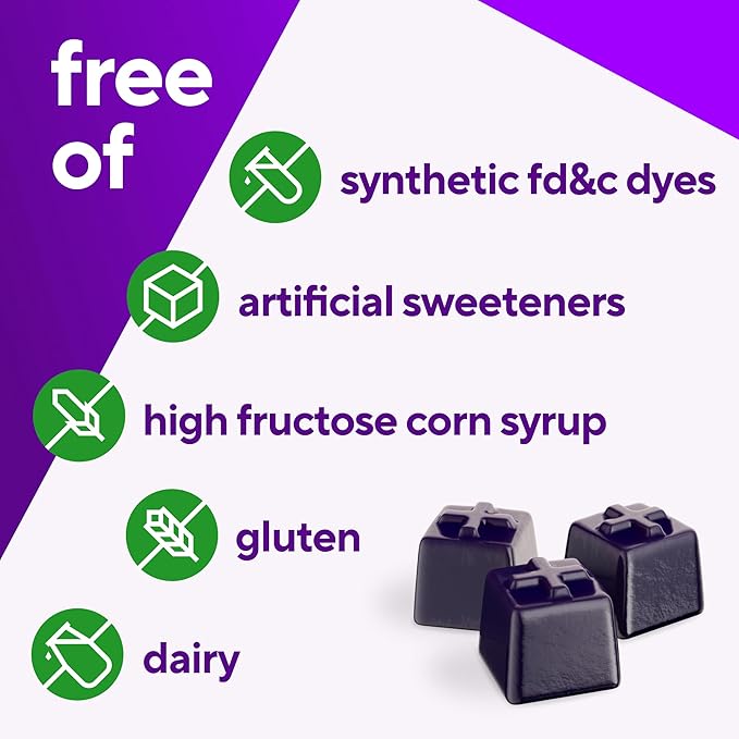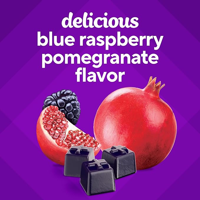 - Flavored with a divine fusion of tart blue raspberry and pomegranate that feels like a treat to eat; a deliciously effortless multi-vitamin option for those who find traditional pills or capsules hard to swallow