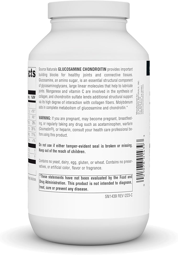 Source Naturals Extra Strength Glucosamine Chondroitin, Promotes Healthy Joints*, 240 Tablets
