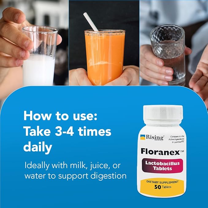 - COMPARE TO: You can compare Rising Floranex with the active ingredient of Lactinex and adults can take four tablets, three to four times daily as a dietary supplement in conjunction with milk, fruit juice or water to help aid in the above-mentioned digestive difficulties.
