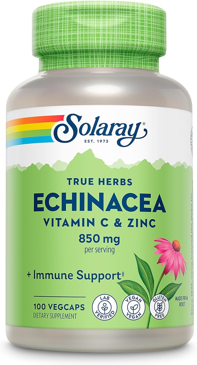 SOLARAY Echinacea Vitamin C & Zinc 850mg Plus Bioflavonoids, Echinacea Capsules for Healthy Immune Support, Vegan, Lab Verified, 60-Day Money-Back Guarantee, 50 Servings, 100 VegCaps