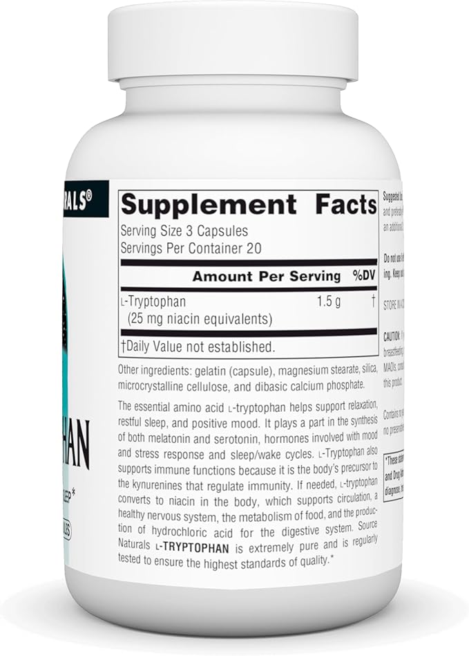 Source Naturals L-Tryptophan, for Mood, Relaxation, and Sleep*, 500mg - 60 Capsules