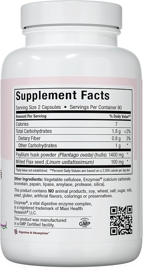- VEGETARIAN & KOSHER CERTIFIED - Maxi is dedicated to formulating daily fiber capsules & bowel movement supplements with pure and natural ingredients. Certified Kosher. Contains no parabens, soy, wheat, salt, gluten, milk, artificial flavors, colorings, or preservatives