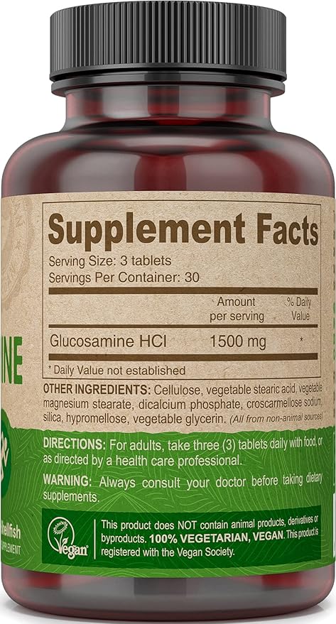 - SUPPLEMENTS ADEQUATE GLUCOSAMINE - The human body which produces glucosamine naturally mainly found in the fluid that is around the joints may not be able to provide adequately and so you may need our vegan glucosamine supplement.
