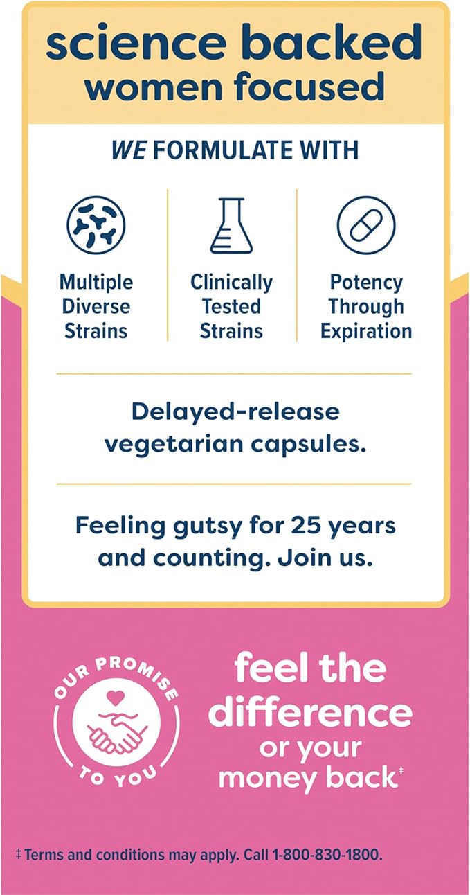- MADE IN THE USA: Made in the USA with high-quality global ingredients, this women's probiotic is Non-GMO Project Verified, gluten-free, dairy-free and soy-free