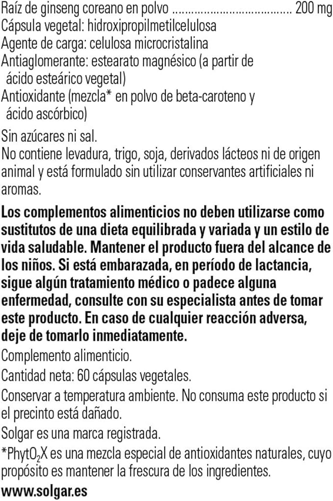 Solgar Korean Ginseng Root Extract, 60 Vegetable Capsules - Immune Support - Standardized, Full Potency (SFP) - Non-GMO, Vegan, Gluten Free, Dairy Free, Kosher - 60 Servings