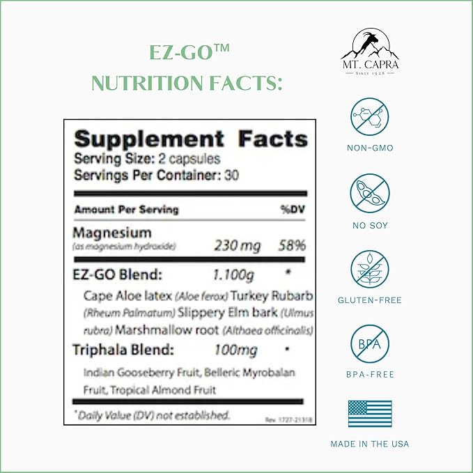 - Magnesium (as magnesium hydroxide) - Known for centuries as nature's mineral laxative and hydrator of stools