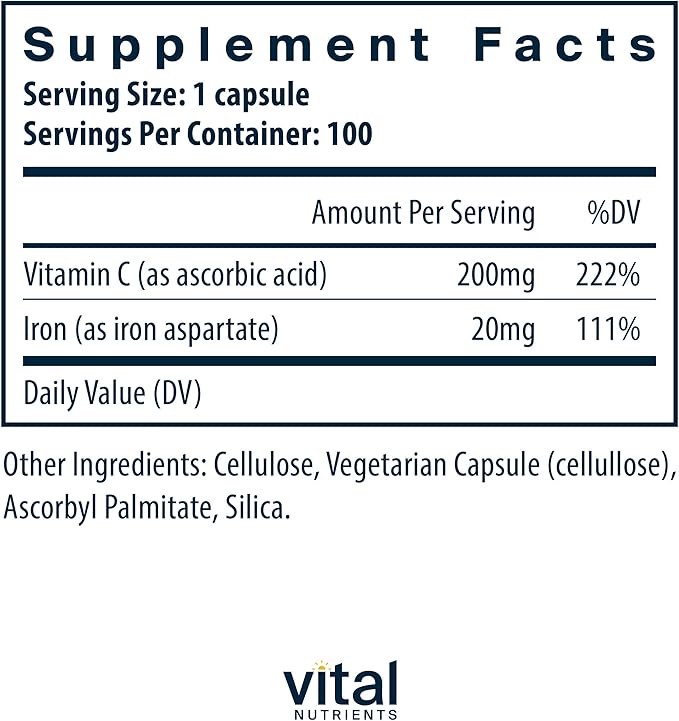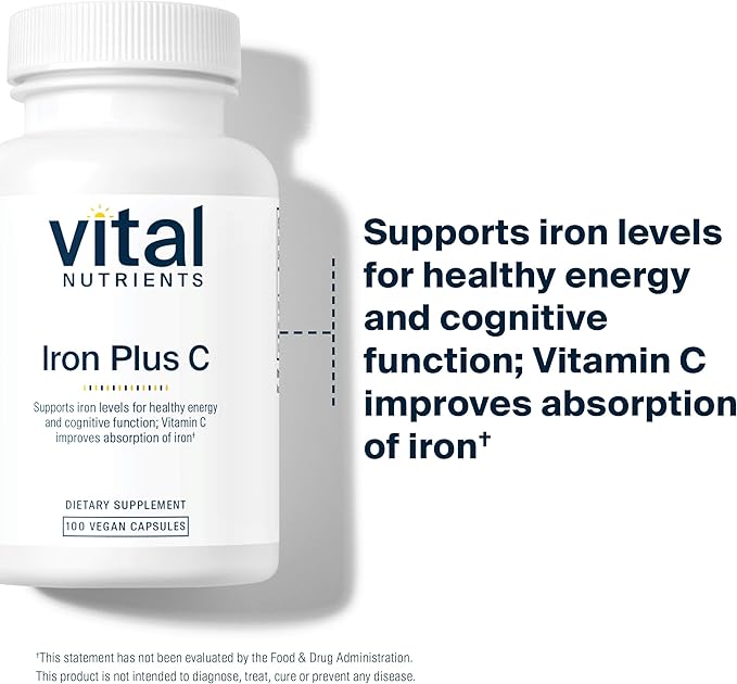 - Added Vitamin C Improves Absorption: Vital Nutrients Iron Plus C includes 200mg vitamin C as ascorbic acid to improve the intestinal absorption of iron, an essential mineral used to make hemoglobin