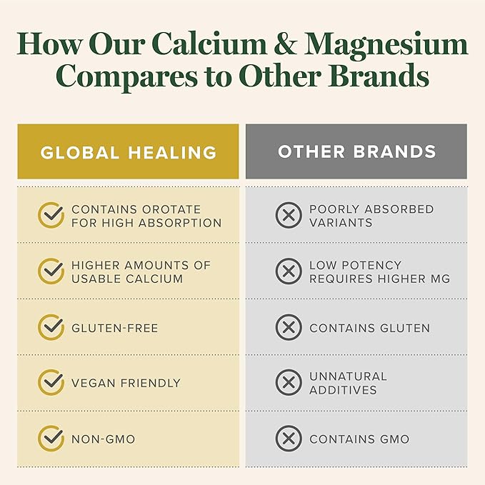Global Healing Calcium and Magnesium Orotate - Bone Strength Supplement for Women and Men - Helps Support Strong Teeth and Cardiovascular Health for Normal Muscle Function - 120 Capsules