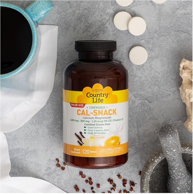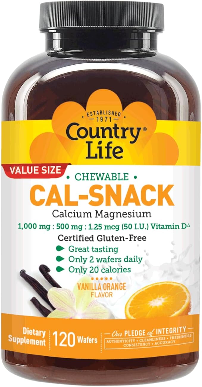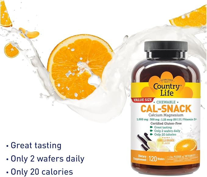Country Life Cal-Snack - Chewable Calcium Magnesium Supplement wafers with Vitamin D3, Easy to Digest, Vanilla Orange Flavor, Dietary Supplement