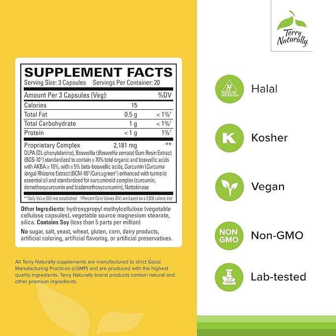 Terry Naturally Curamin - Curcumin Supplement for Circulation & Endorphin Support - Support for Occasional Discomfort - Aids Healthy Muscles - 60 Capsules