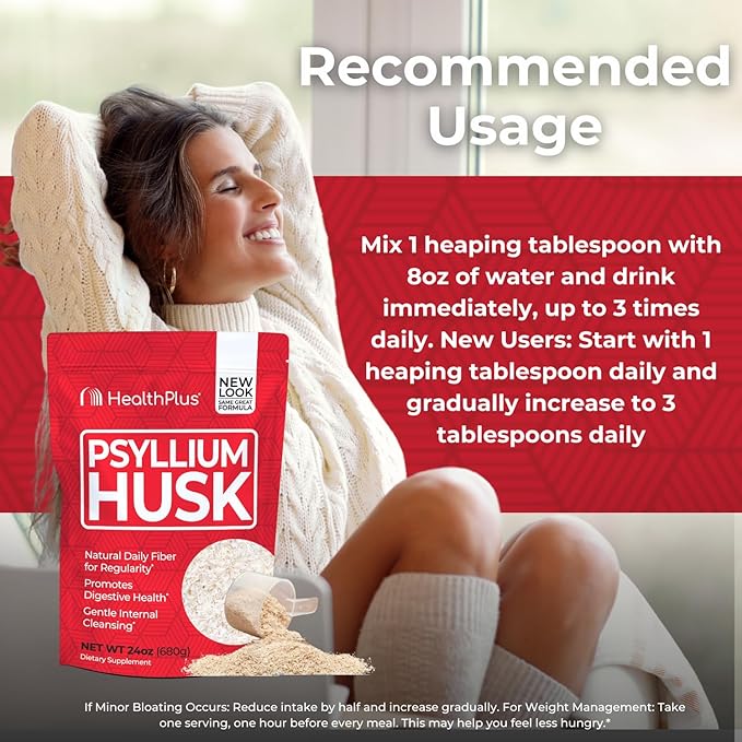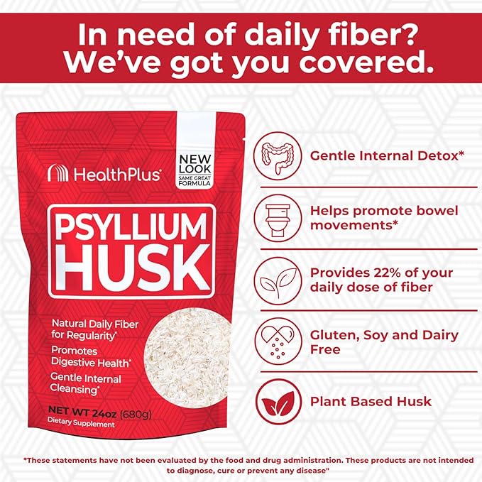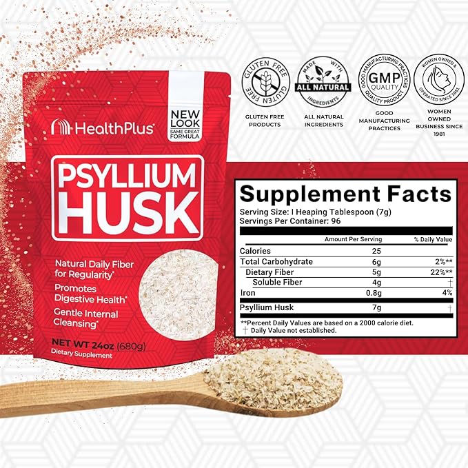 Health Plus, Psyllium Husk, 24 oz, 96 Servings - Natural Detox, Daily Dietary Fiber Supplement, Constipation Relief, Gentle Gut Cleanse, Keto Baking