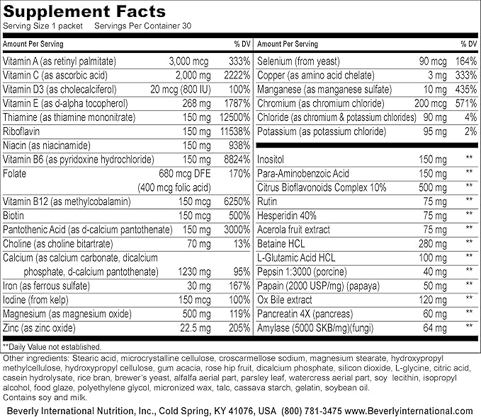 Beverly International Super Pak. 30 Packs. High-Potency Multivitamin, Daily Pack for Energy, Performance, Immune System Health. Custom-formulated for Athletes, Active Men and Women since 1970.