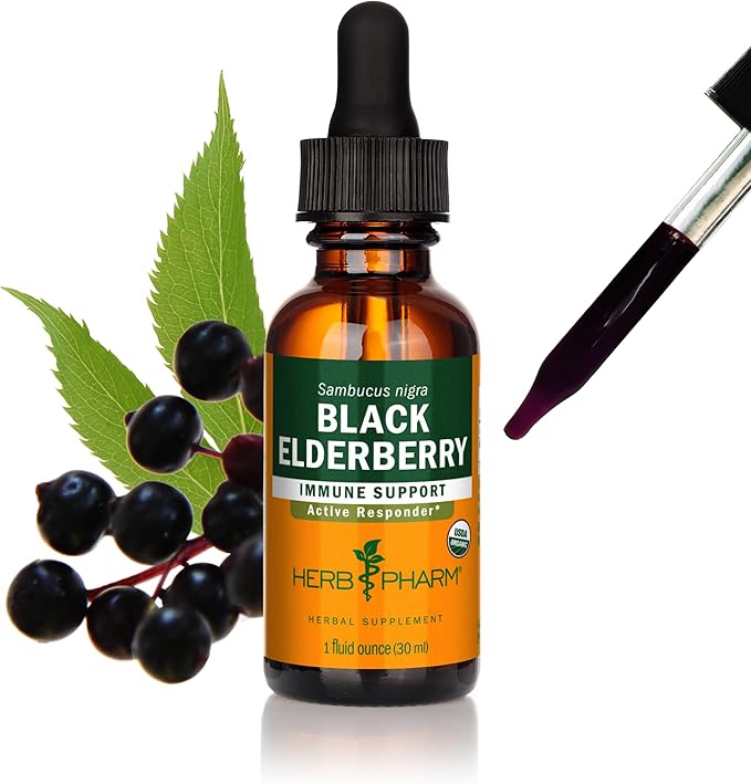 Herb Pharm Certified Organic Black Elderberry Liquid Extract for Immune System Support, Organic Cane Alcohol, 1 Oz