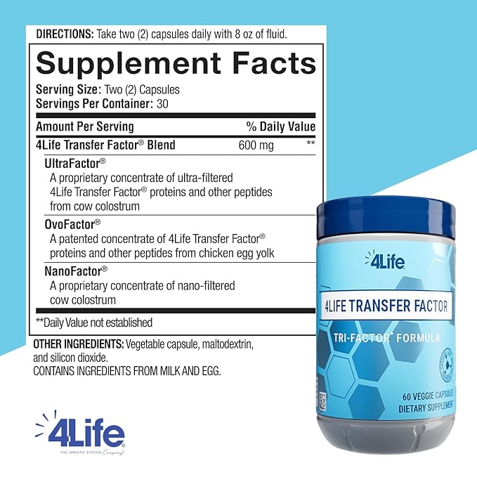 - Immune System Support: 4Life Transfer Factor Tri-Factor Formula is designed to provide exhaustive immune support by leveraging the powerful immune-boosting benefits of cow colostrum & chicken egg yolk