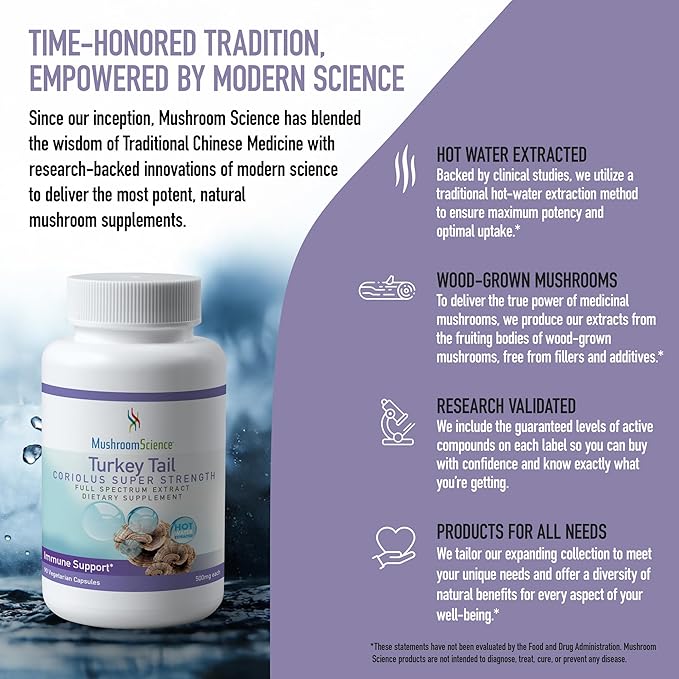 - QUALITY INGREDIENTS: Our MushroomScience Turkey Tail, Coriolus Super Strength dietary supplement is made with quality, natural ingredients. Each vegetarian capsule contains 500mg of potent Turkey Tail extract, helping to ensure you receive the most nature has to offer in every dose.