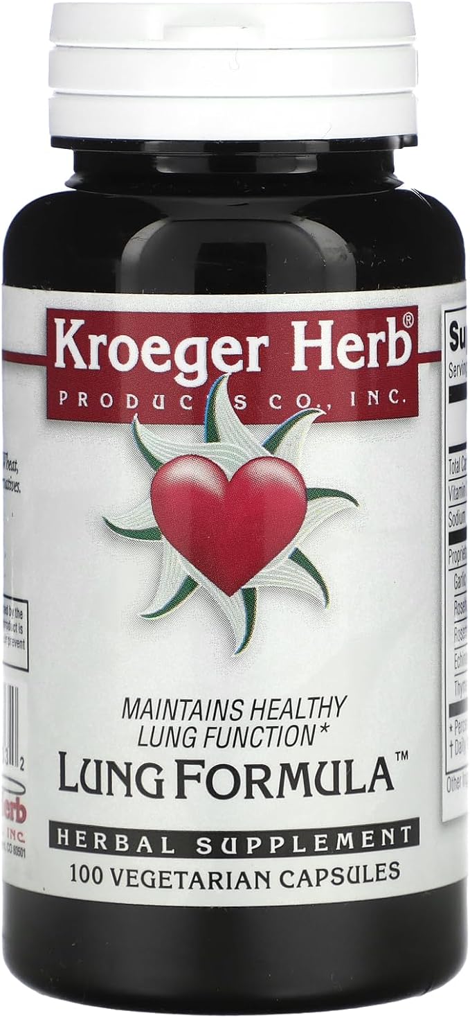 Kroeger Herb Products, Lung Formula, Lung Herbs, Respiratory and Immune Lung Support Formula, Echinacea, Complete Lungs Formula, Non-GMO, Gluten Free, No Preservatives - 100 Capsules, Made in USA