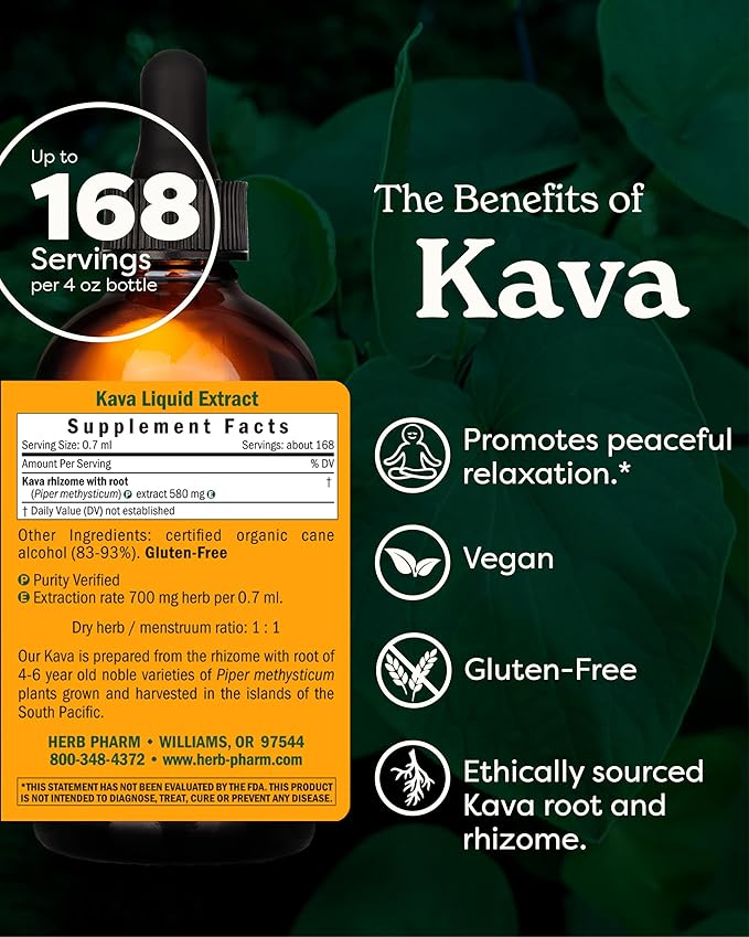 Organic Kava Root Liquid Extract for Stress Support & Relaxation: Vegan Kava Extract, Non-GMO Kava Kava Tincture for Calm & Relaxed Mood, Gluten-Free, 4 Oz | Up to 3 Months Supply
