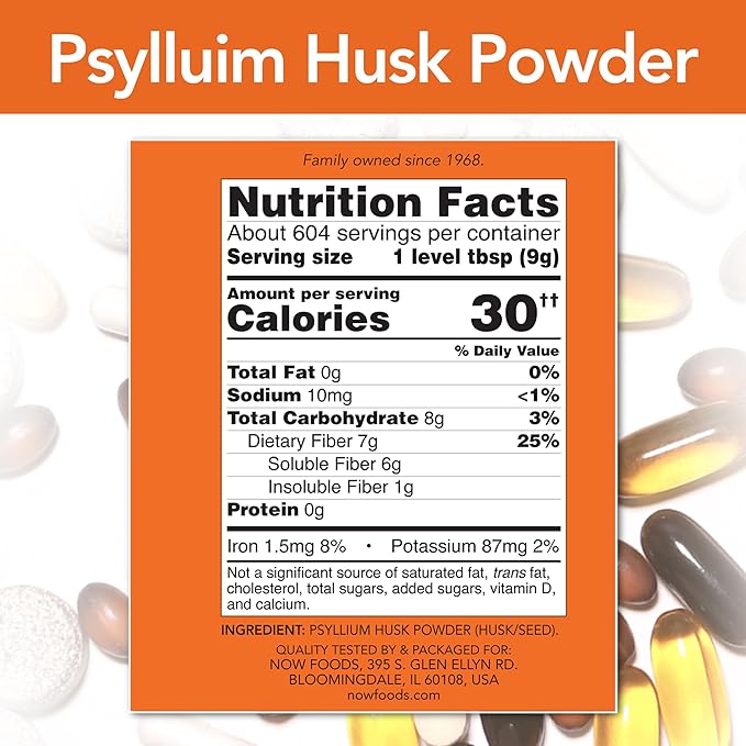 NOW Foods Supplements, Psyllium Husk Powder, Non-GMO Project Verified, Soluble Fiber, 12-Pound
