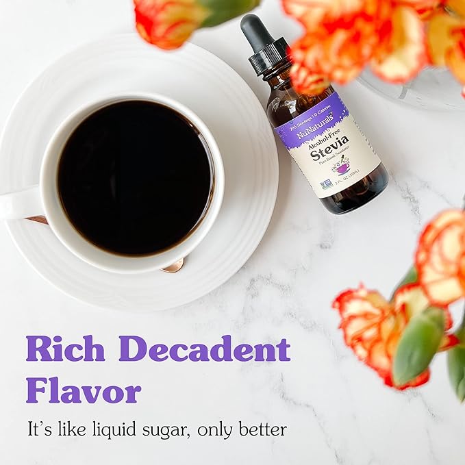 NuNaturals Liquid Stevia, Sugar-Free Sweetener, Plant-Based Sugar Substitute, Zero Calorie, Unflavored, Alcohol-Free, 2 oz