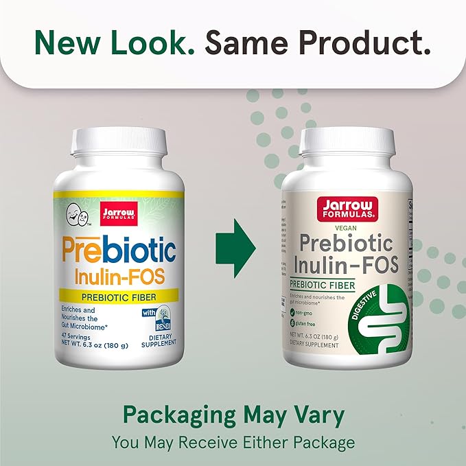 - Inulin-FOS Prebiotic Fiber: One 6.3 ounce container of Jarrow Formulas Prebiotic Inulin FOS Prebiotic Fiber Supplement for up to approx 47 servings