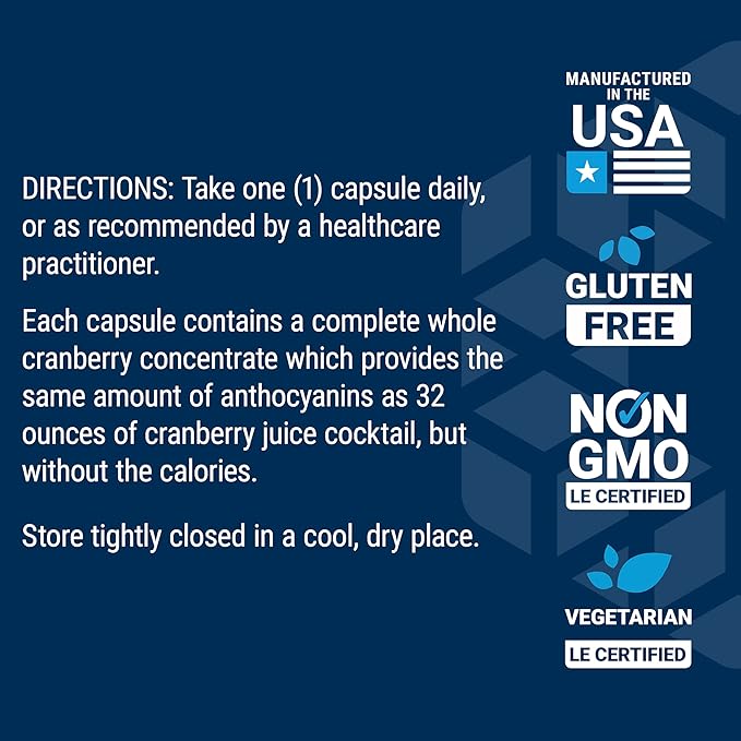 - Cranberry juice benefits without the calories – Each capsule contains powerful polyphenols, organic acids and antioxidants for health benefits equal to four glasses of cranberry juice cocktail, without any calories or added sugar.