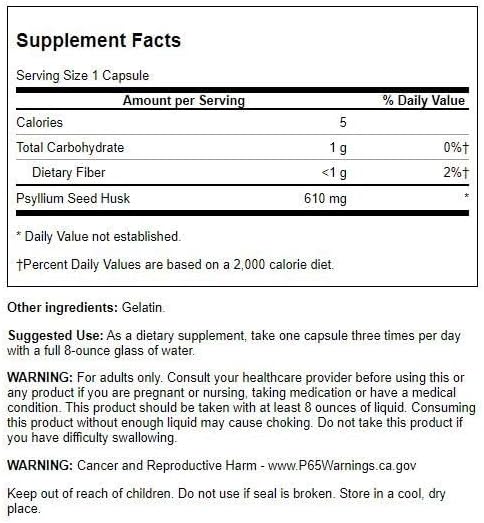 - Primary Supplement Type : Swanson Psyllium Husks 610 Milligrams 100 Capsules