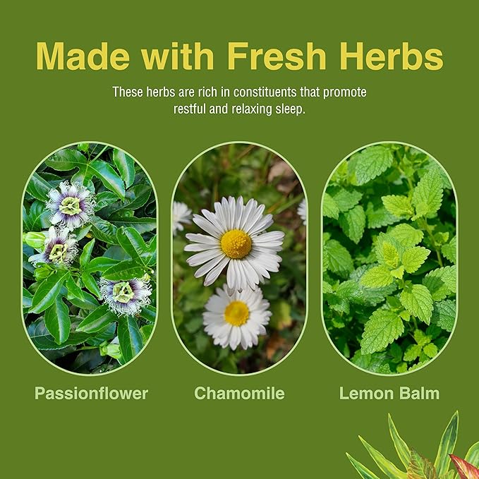 - Health Supplement with Herbal Ingredients: This gentle sleep supplement is made with passionflower, chamomile and lemon balm for soothing sleep support