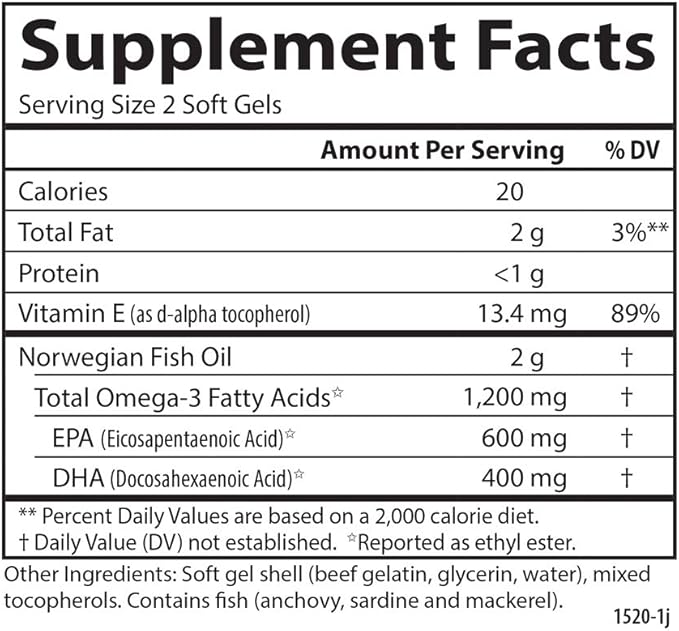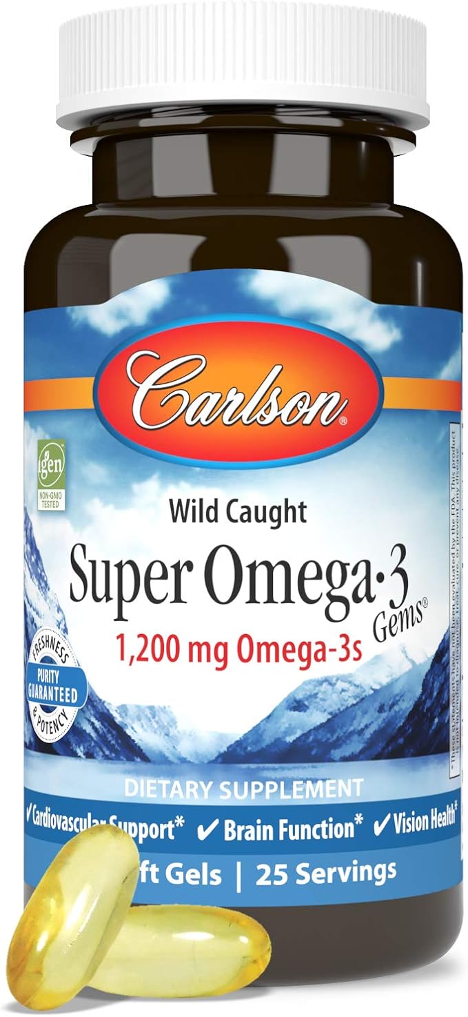 Carlson - Super Omega-3 Gems, 1200 mg Omega-3s, Wild Caught, Sustainably Sourced, 50 soft gels
