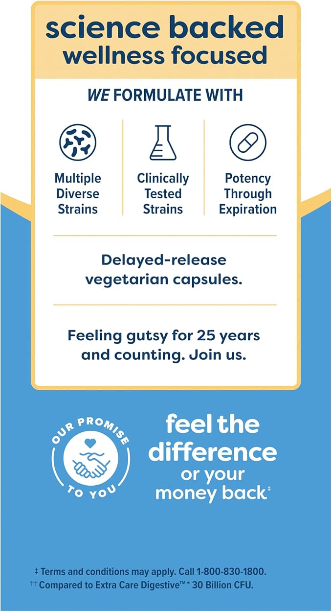 - MULTIPLE BENEFITS: Extra Care probiotic helps proactively support digestive health, along with probiotic strain B. lactis Bl-04 for respiratory and immune support (2)