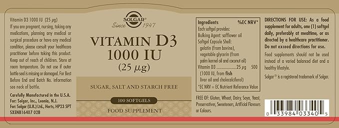- Support Your Immune System; Solgar Vitamin D3 Softgels support a healthy immune system and neuromuscular function