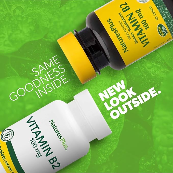 Natures Plus Vitamin B2 (Riboflavin) - 100 mg, 90 Vegetarian Tablets - Natural Energy & Metabolism Booster, Promotes Overall Health - Gluten-Free - 90 Servings